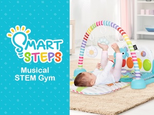 - Smart Steps® Musical Stem Gym ofrece interacciones basadas en STEM para promover el desarrollo de la fuerza central para los bebés.