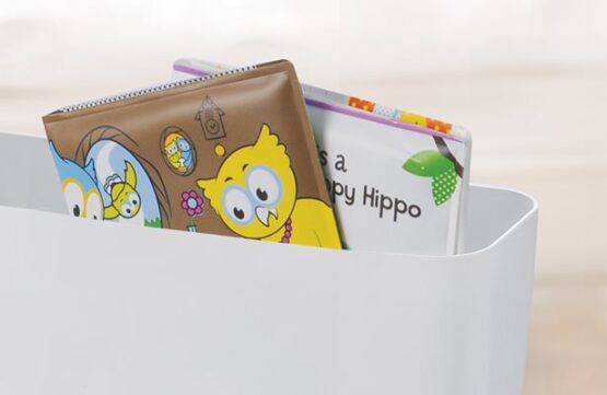 - Compartimento de toallitas incorporado que promueve hábitos saludables Protector contra salpicaduras para niños